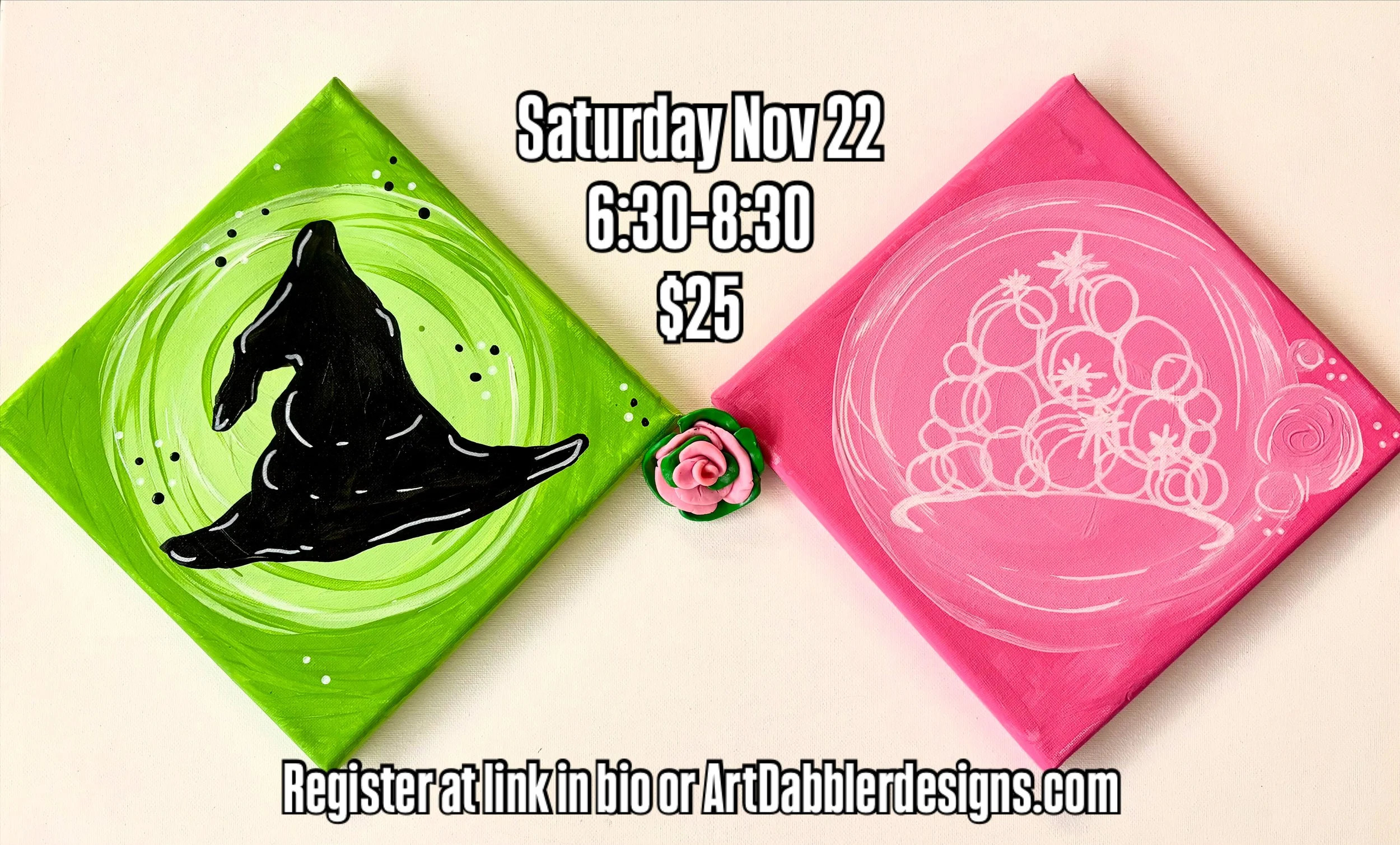 Drop your artist(s) at the studio and enjoy a night out while we debate Team Elphaba or Team Glinda on the heels of the release of Wicked: For Good! Each artist will create 2 paintings an optional clay accessories!